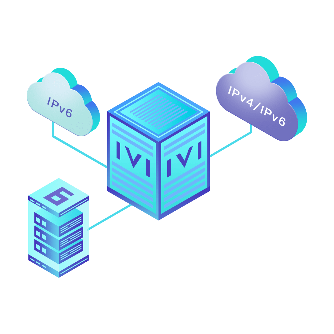 對(duì)正在進(jìn)行IPv6整體升級(jí)規(guī)劃的運(yùn)營(yíng)商,應(yīng)用IPv6升級(jí)方案2.5,通過(guò)IVI無(wú)狀態(tài)翻譯技術(shù)和純IPv6接入網(wǎng)絡(luò),為雙棧客戶(hù)端和雙棧服務(wù)器提供連通服務(wù)。
